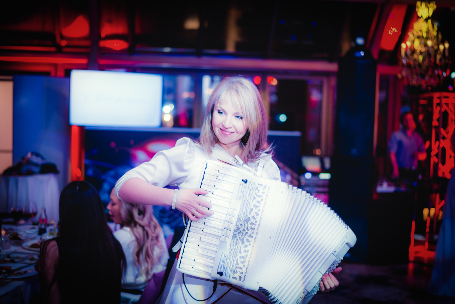 Аккордеонистка Анна Каркач - это яркое решение для любого мероприятия. Разнообраная программа как сольно, так и в сопровождении музыкального ансамбля от народной музыки до рока, отлично подойдет для украшения Вашего праздника. Корпоратив, юбилей, день рождения или свадьба, любое событие поможет украсить зажигательная программа с ярким исполнением Ваших любимых хитов.